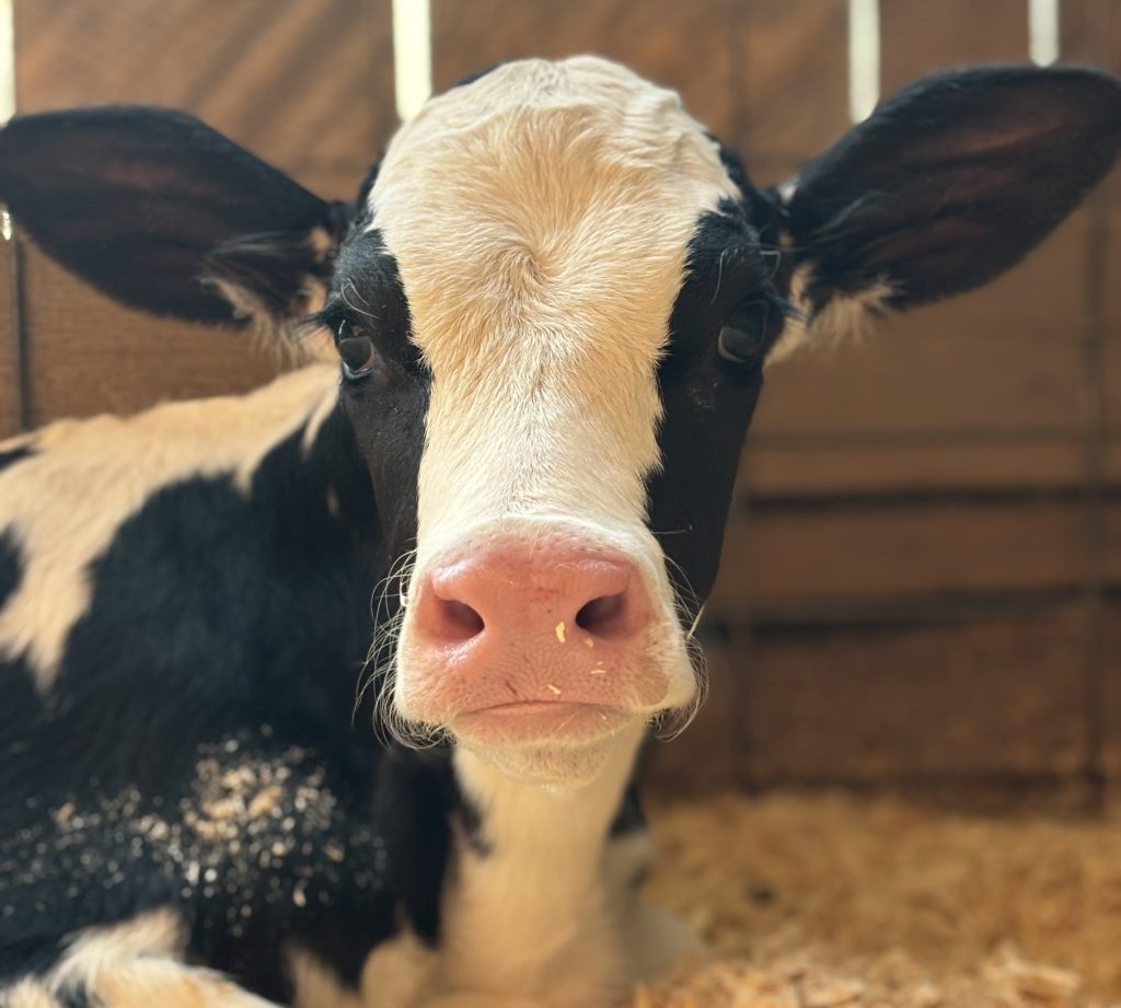 This August, Herbivorous Acres animal sanctuary welcomed its newest resident — a two-month-old Holstein calf named Bonnie. Her story began with heartbreak but has turned into one of resilience, friendship, and joy. Bonnie was born a twin, but because her brother was a bull calf, her development was affected in a way common to twin cows of opposite sexes. Their shared placenta caused her to be born without functioning reproductive organs, making her unable to have calves — and, tragically, considered “useless” to the dairy industry. Her twin brother had already been sold for veal, and Bonnie was left alone and in need of a safe home.