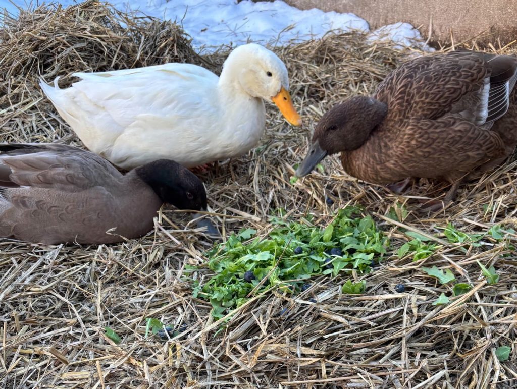 In warmer months, one of Marie’s favorite sounds is hearing the ducks splash joyfully in their little pool. They also love puddles, and their caregivers often make a few extra for them on cleaning days.