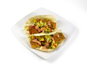 - Crispy Tofu Tacos — Crispy marinated tofu tossed with savory taco seasoning and served in flour tortillas with citrus cabbage, pineapple salsa, and a refreshing strawberry vinaigrette.