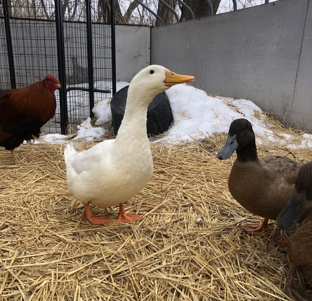 Herbivorous Acres was happy to provide refuge for Rupert. They realized that his chances of survival in the freezing cold without food, water, or shelter were nearly nonexistent. Pekin ducks are a domesticated breed and are not suited to live in the wild, especially in harsh winter conditions.